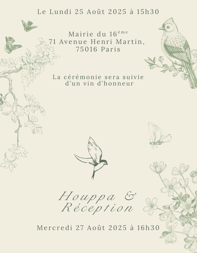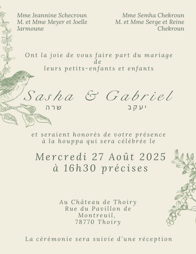 Serez-vous présent à la houppa et soirée du 27 Août 2025 ?
